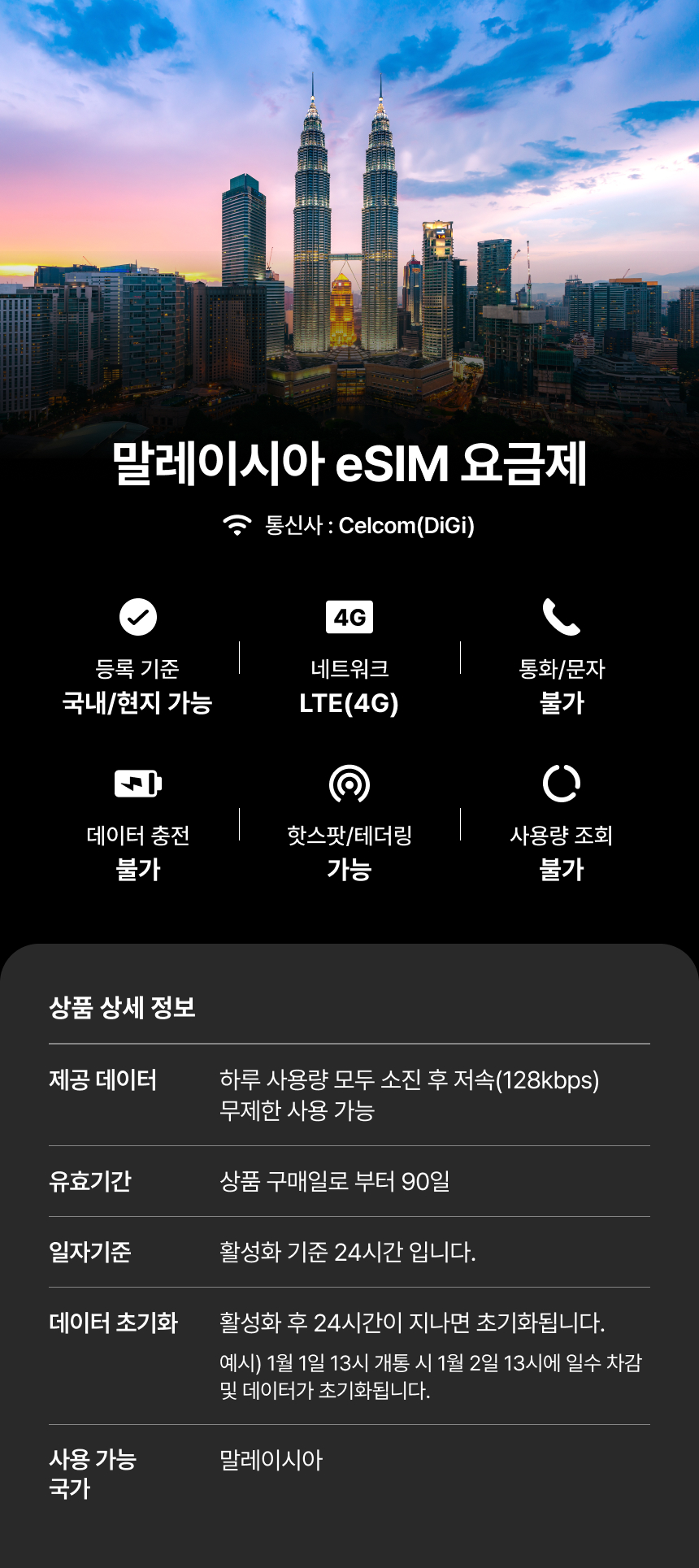 [말레이시아] eSIM 데이터 무제한 (3GB)