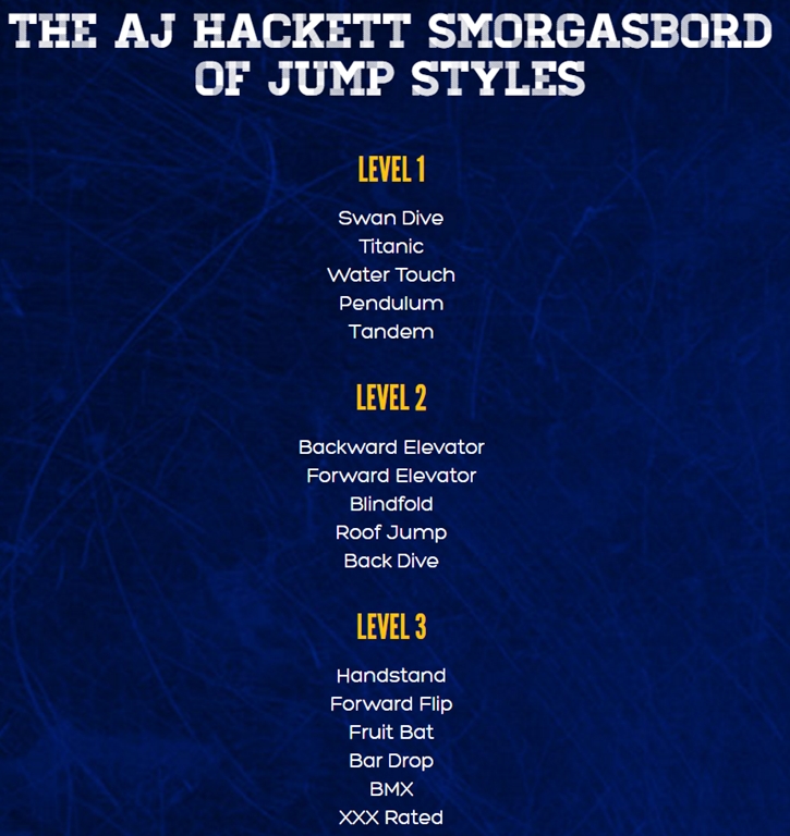 캐언즈에서 20분 정도 북쪽으로 올라가면 나오는 곳에 설치된 높이 50미터의 번지점프대. 이 번지 점프대는 오직 번지 점프만을 위해 1990년에 설치된 최초의 번지점프대입니다. 캐언즈 정글 속에 있는 다양한 플랫폼, 바, 라이브 밴드, 휴식을 취할 수 있는 공간이 준비되어있는 것 또한 장점이 되겠네요. 번지 점프 이전에 마음을 잡고 다시 번지 점프 이후 극강의 흥분을 잠시 이 곳에서 쉬면서 즐길 수 있죠. 라이브 밴드와 Bar에서 조금 쉬면서 말이죠. 1. AJ Hackett 미팅 예약시간에 맞춰 개별로 이동해야합니다. 구글지도 2. 번지점프 번지점프대는 높이 50미터에 위치하며 정글 속 1층에는 강을 사이에 두고 Bar가 형성되어있습니다. 레벨 1~3까지 점프 능력에 따라 선택할 수 있습니다. 몇 초의 순간이 평생에 잊을 수 없는 짜릿한 경험을 제공합니다.