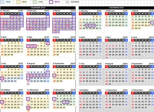 [캘린더] * 보라색 선 (제외일)은 JTR에서 판매하고 있지 않습니다. 해당 날은 현지에서만 판매합니다.