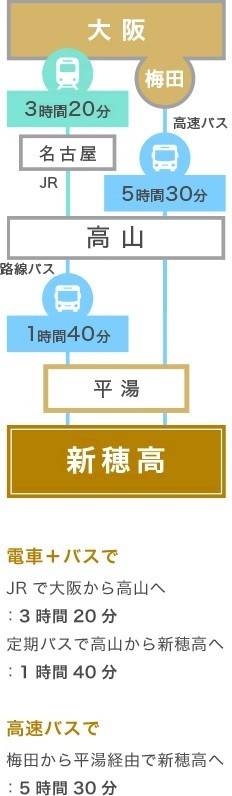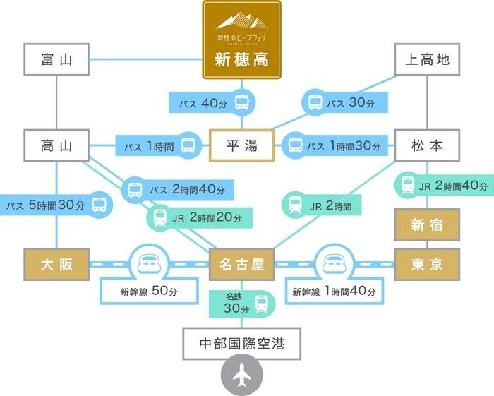 주소 : 〒506-1421 岐阜県高山市奥飛騨温泉郷新穂高温泉 공식 홈페이지 일본어 : https://shinhotaka-ropeway.jp/ 바로가기 영어 : https://shinhotaka-ropeway.jp/en/ 바로가기 ・전철 및 버스 ·JR로 오사카에서 다카야마(3시간 30분) + 정기버스로 다카야마에서 신호타카(1시간 40분) ·JR로 나고야에서 다카야마(2시간 30분) + 정기버스로 다카야마에서 신호타카(1시간 40분) ·고속버스로 나고야에서 다카야마(2시간 45분) + 정기버스로 다카야마에서 신호타카(1시간 40분) ·JR로 신주쿠에서 마쓰모토(2시간 40분) + 정기버스로 마쓰모토에서 신호다카(2시간 30분) ※자세한 내용은 공식 홈페이지를 확인해 주세요.