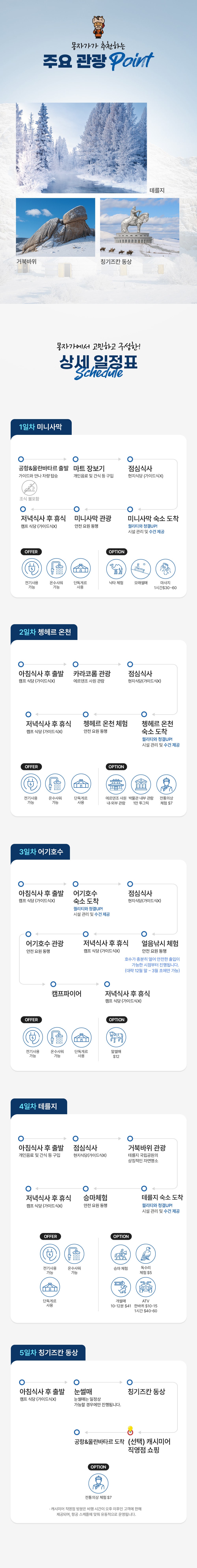 미니사막,모래썰매,낙타,아르항가이,화산,호수,수영,승마,캠프파이어,보트