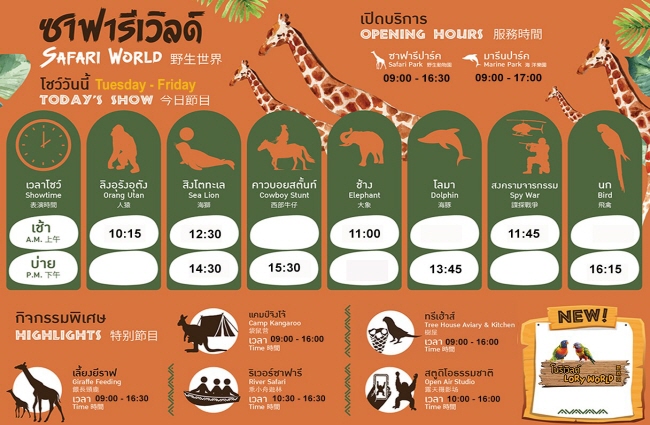 ​▶ 사파리월드 가는 방법​​ · 택시 이용시 :​ 99 Panya Indra Rd, Sam Wa Tawan Tok, Khlong Sam Wa, Bangkok 10510 또는 구글지도에 [Safari World Bangkok]을 검색해주세요. 방콕시내에서 차로 약 40분 ~ 1시간 거리에 위치해있습니다.