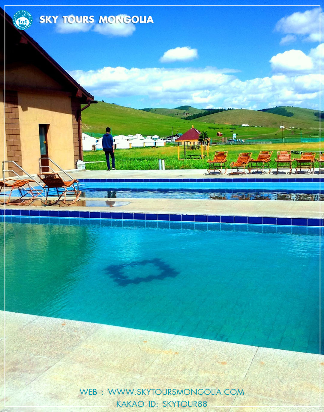 쳉헤르 온천 (3시간 소요) ★ 엘셍타사르하이 ▶쳉헤르 온천 시간 소요: ★ 3 시간 소요/200km 숙소: ★ 여행자 캠프 ▶ 10:00 조식후 쳉헤르 온천을 향해 이동합니다. ▶ 가는 길에 13세기의 몽골 수도 하르호링을 구경합니다. ▶ 여행자 캠프 및 게스트 하우스 체크인 체험: ★노천온천 즐기기. (수영복, 비치웨어 꼭 챙겨오세요) ★별, 은하수 체험 ★하르호링 방물관 식사: ★ 아침 ★ 점심/현지식/ ★ 저녁 ★소개★: 쳉헤르 온천은 초원 한가운데에서 밤하늘의 별이 쏟아지는 야외 온천(노천온천)을 즐기는 투어입니다. 온천의 수원지는 산에서 내려오며 각종 피부에 좋은 자연 미네랄 워터로 피부병, 피부미용에 좋으며 당뇨병, 치료후에 건강 회복,피로, 소화 등에 효과가 있습니다. 몽골어로 쳉헤르는 ‘푸른’이라는 뜻으로 ‘푸른 온천’이고 87°C의 온천물이 나오는 곳에서 펌프로 각 게르촌으로 물을 올려서 적당한 온도까지 식힌 후 온천욕을 할 수 있게 하는 곳들이 있다.초원의 야생동물, 끝없는 지평선 그림 같은 하늘, 밤하늘의 별을 보며 온천을 즐길 수 있습니다. 쳉헤르 온천에서 야외 노천 온천을 보유하고 있는 여행자캠프에서 자유롭게 피로를 풀고 즐겨보세요. ★주의★: 온천에 필요한 옷들은 챙겨오세요. (수영복, 비치웨어)