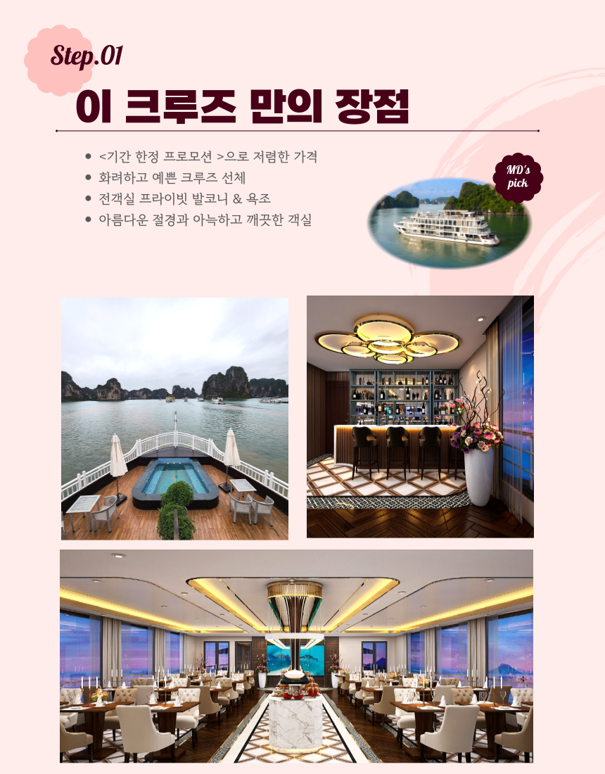 • 파라다이스나 엠바사더 만큼 큰 회사는 아니지만 하롱베이의 수많은 크루즈 회사들중 고르고 고른,