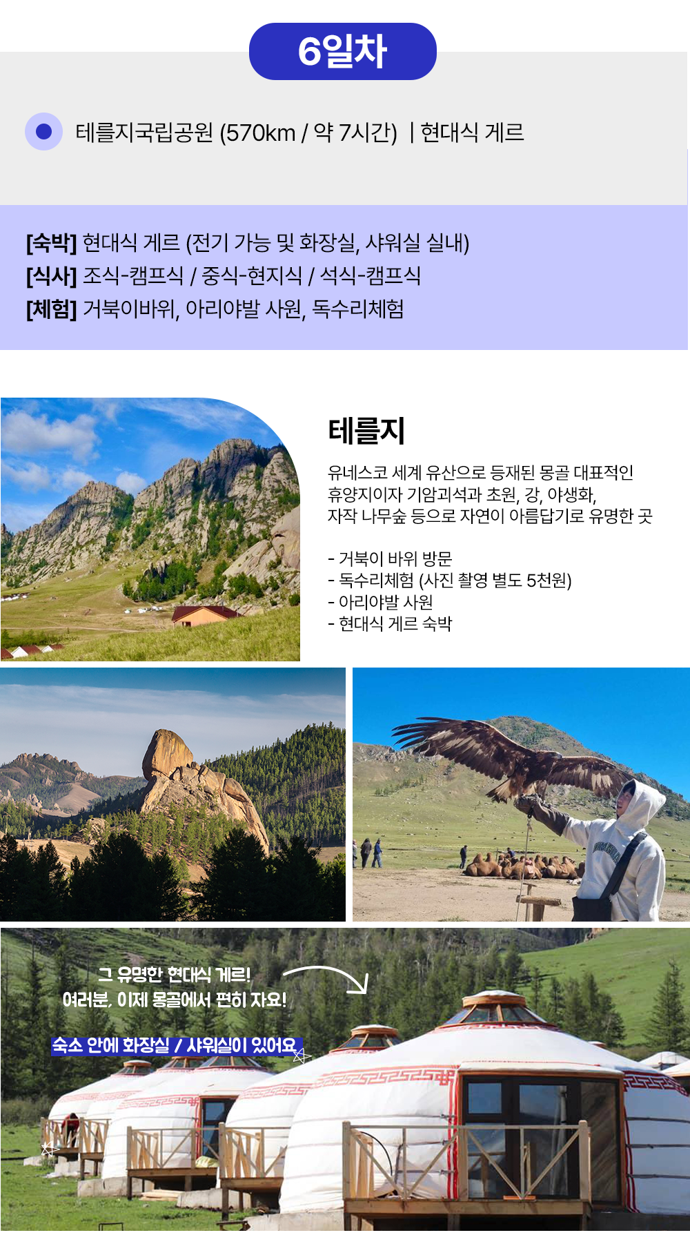 • [6day] 유네스코 등재 테를지, 거북이 바위, 아랴발 사원, 독수리 체험 (현대식 게르)