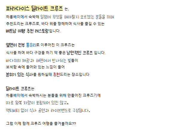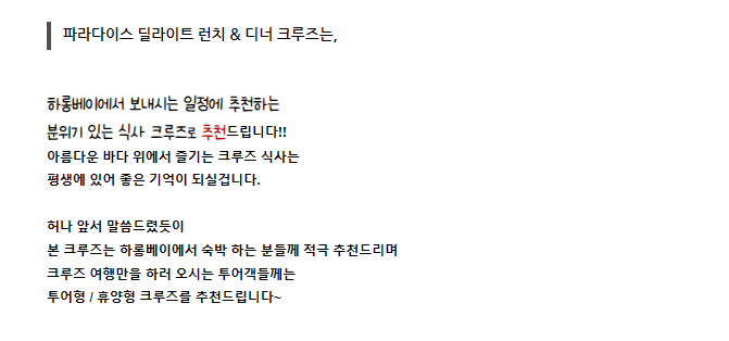 파라다이스 딜라이트 식사 크루즈를 간단하게 소개해 드립니다!👍