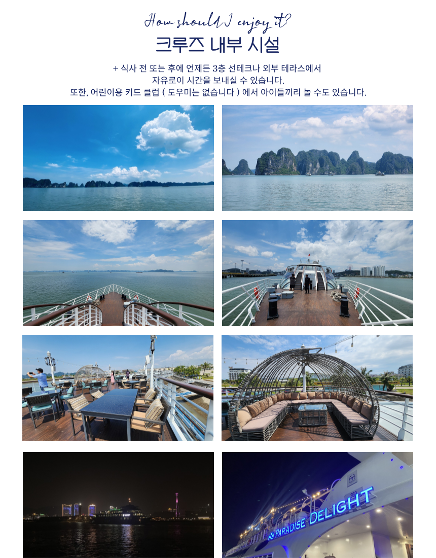 순수히 보트안에서 하롱베이 해변의 풍경을 관람하는 상품입니다.