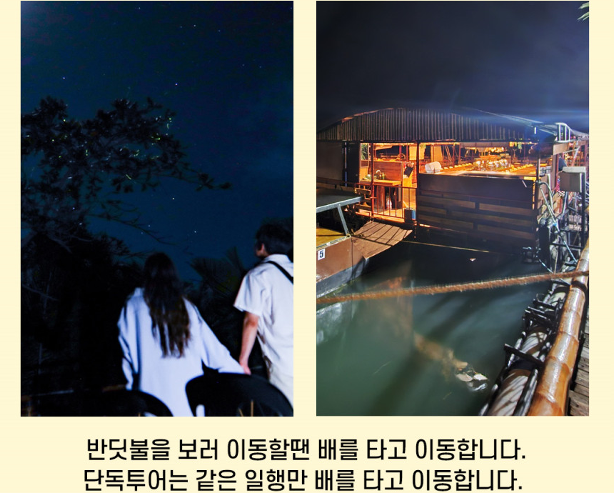 반빗불이 투어 단독 보트는 현재 운영되고 있지 않습니다.