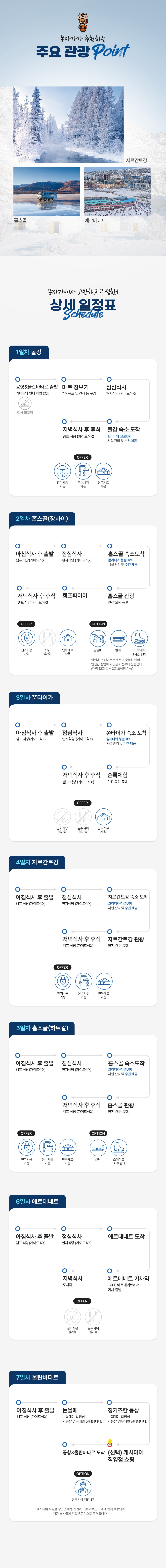 모래썰매,낙타,사막은하수,홉스골호수,무릉,허르헉,승마,캠프파이어,보트,볼강
